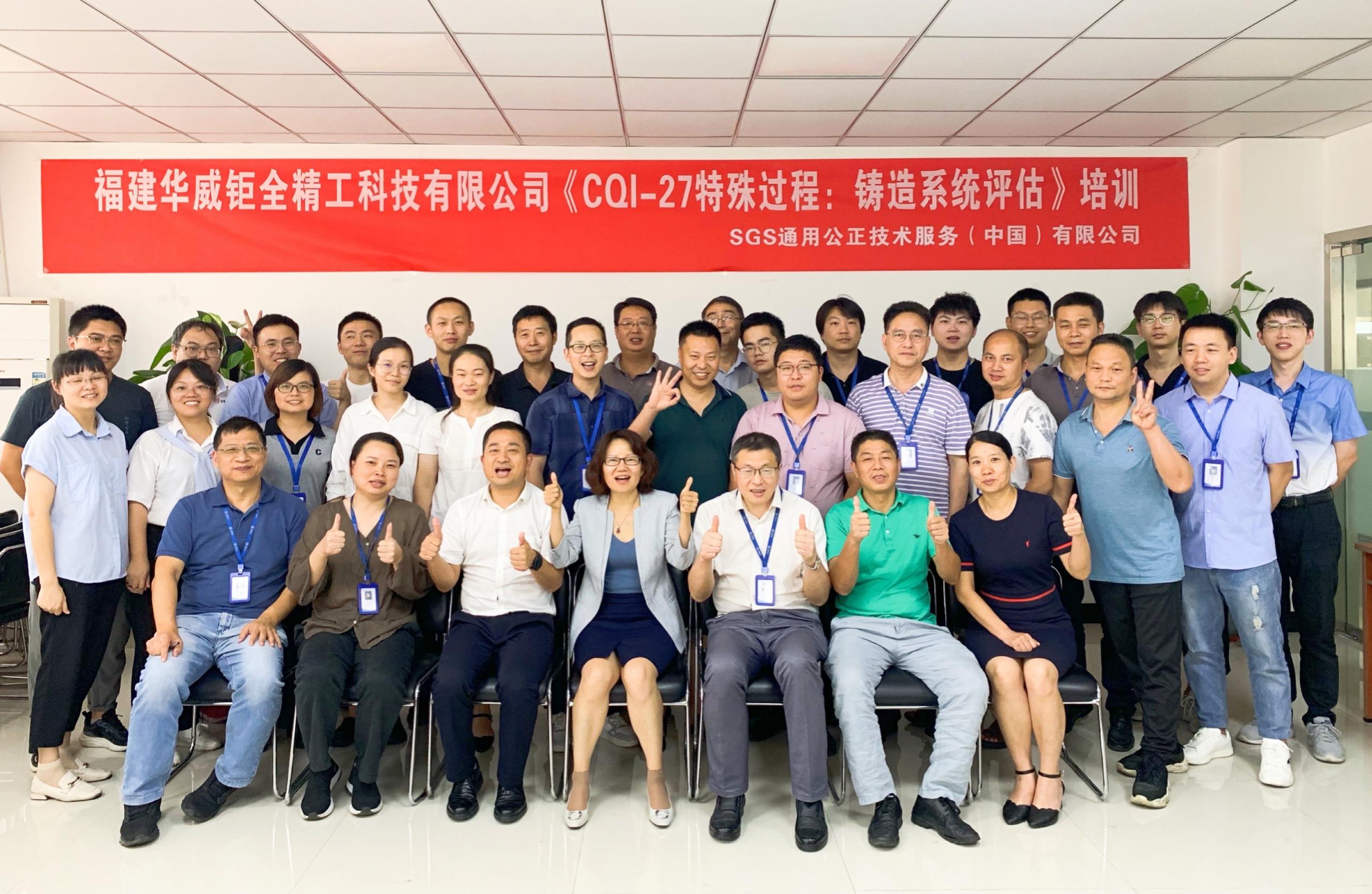为强化公司内部体系管理,提高企业发展质量效益,2022819日至21日,华威钜全公司精心组织开展IATF  16949体系中的CQI-27特殊过程(铸造系统评估)专项培训。来自技术开发部、生产基地的公司领导、质量管理人员、体系管理人员、研发设计人员等近40位员工参加培训,SGS通用公正技术服务(中国)有限公司王芳老师担任主讲。